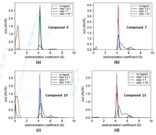 - Schuck, P. Size-distribution analysis of macromolecules by sedimentation velocity ultracentrifugation and lamm equation modeling. Biophys. J. 2000, 78, 1606–1619. [Google Scholar] [CrossRef]