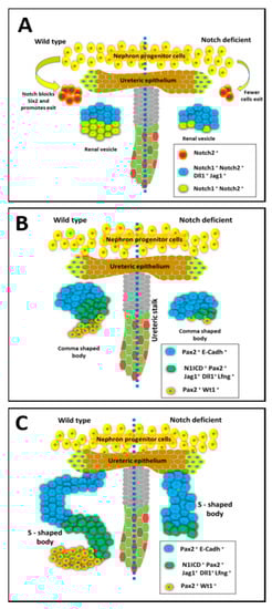 - Chung, E.; Deacon, P.; Marable, S.; Shin, J.; Park, J.S. Notch signaling promotes nephrogenesis by downregulating Six2. Development 2016, 143, 3907–3913. [Google Scholar] [CrossRef] [PubMed]