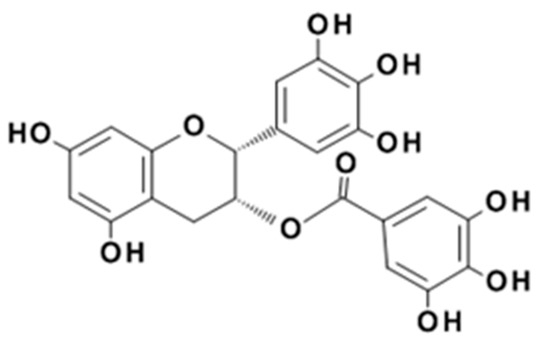 The chemical structure of the bioactive compound, (-)-epigallocatechin gallate (EGCg).