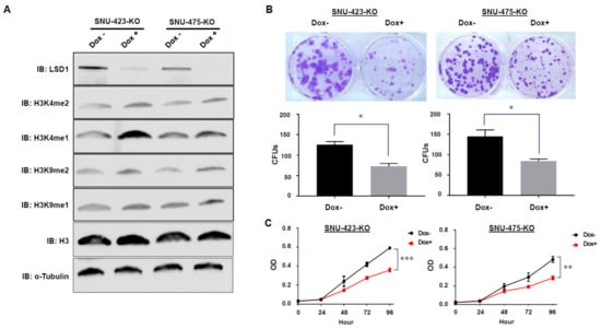 3.3. Establishment of Dox-Inducible LSD1 Knockout HCC Cells Using the CRISPR/Cas9 System
