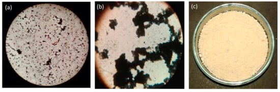 Bacillus subtilis is a well-known PHA producer [26]; here in this study, B. subtilis MTCC 144 was exploited for PHA production considering two phase production schemes during the experiments. Before moving ahead for the experimental part, the presence of PHAs was verified with Sudan black dye staining protocol [27], which is generally used as a preliminary screening agent for lipophilic compounds. Earlier, Bhuwal et al. successfully used Sudan black dye for the screening of PHA-producing bacteria [28]. In the present study, the used strain B. subtilis MTCC 144 also gave positive results in the staining experiment (Figure 1a,b). After confirming the presence of PHA, the aggregated PHAs were extracted via sodium hypochlorite method (Figure 1c).