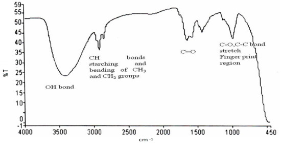 The polymer PHA produced by using watermelon rind as a carbon source was further investigated for the identification of chemical functional group(s). The depiction of functional groups through FTIR spectroscopy predicts the structure of the produced PHAs (Figure 4).