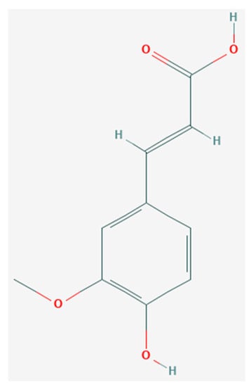 - National Center for Biotechnology Information. PubChem Database. Ferulic Acid, CID=445858. Available online: https://pubchem.ncbi.nlm.nih.gov/compound/Ferulic-acid (accessed on 26 November 2019).