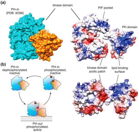 - Calleja, V.; Laguerre, M.; Parker, P.J.; Larijani, B. Role of a novel PH-kinase domain interface in PKB/Akt regulation: Structural mechanism for allosteric inhibition. PLoS Biol. 2009, 7, e17. [Google Scholar] [CrossRef] [PubMed]