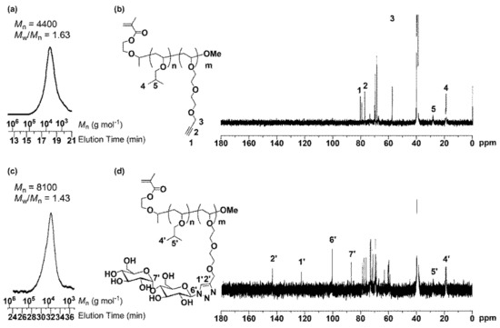 - Tanaka, T.; Nguyen, M.T.; Minoda, M. Amphiphilic glycopolymer-type macromonomers for the preparation of carbohydrate-decorated polymer particles. Chem. Lett. 2018, 47, 1519–1521. [Google Scholar] [CrossRef]