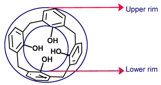 - Hussain, M.A.; Ashraf, M.V.; Muhammad, G.; Tahir, M.N.; Bukhari, S.N.A. Calixarene: A versatile material for drug design and applications. Curr. Pharm. Des. 2017, 23, 2377–2388. [Google Scholar] [CrossRef] [PubMed]