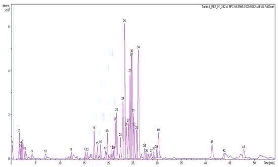 2.8.4. High-Performance Liquid Chromatography-Mass Spectrometry (HPLC-MS) Fingerprint of CAB