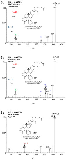 - Meljon, A.; Theofilopoulos, S.; Shackleton, C.H.; Watson, G.L.; Javitt, N.B.; Knolker, H.J.; Saini, R.; Arenas, E.; Wang, Y.; Griffiths, W.J. Analysis of bioactive oxysterols in newborn mouse brain by LC/MS. J. Lipid Res. 2012, 53, 2469–2483. [Google Scholar] [CrossRef] [PubMed]