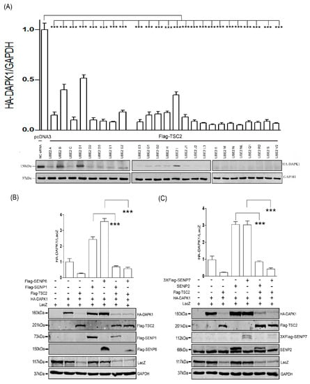 Wang Q, Zhang X, Chen L, Weng S, Xia Y, Ye Y, Li K, Liao Z, Chen P, Alsamman K, et al. Regulation of the Expression of DAPK1 by SUMO Pathway. Biomolecules. 2019; 9(4):151. https://doi.org/10.3390/biom9040151