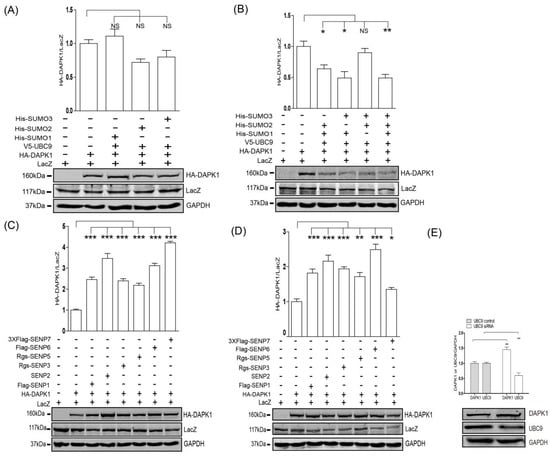 Wang, Q.; Zhang, X.; Chen, L.; Weng, S.; Xia, Y.; Ye, Y.; Li, K.; Liao, Z.; Chen, P.; Alsamman, K.; et al. Regulation of the Expression of DAPK1 by SUMO Pathway. Biomolecules 2019, 9, 151. https://doi.org/10.3390/biom9040151