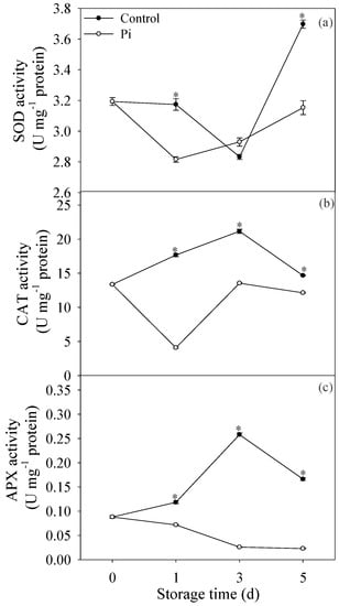 3.3. Effects of P. italicum Infection on SOD, CAT, and APX Activities of Mandarin Peel