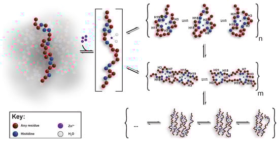 - Istrate, A.N.; Kozin, S.A.; Zhokhov, S.S.; Mantsyzov, A.B.; Kechko, O.I.; Pastore, A.; Makarov, A.A.; Polshakov, V.I. Interplay of histidine residues of the Alzheimer’s disease Aβ peptide governs its Zn-induced oligomerization. Sci. Rep. 2016, 6, 21734. [Google Scholar] [CrossRef]