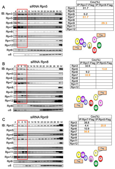 Rpn11-knockdown showed that Rpn11 is not an essential structural component in the formation of the Rpn5-8-9-11 complex. Therefore, we examined how the Rpn5-8-9 complex is assembled (Figure 5).