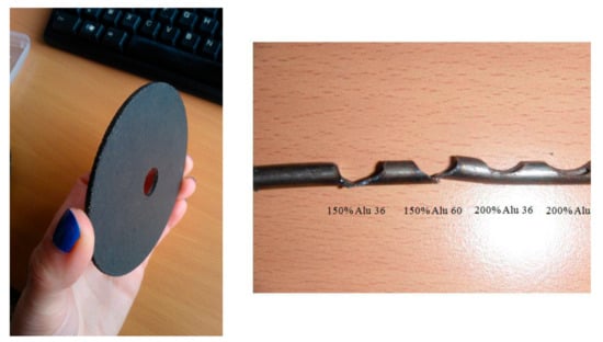 - Lagel, M.C.; Pizzi, A.; Basso, M.C.; Abdalla, S. Development and characterisation of abrasive grinding wheels with a tannin-furanic resin matrix. Ind. Crops Prod. 2014, 65, 333–348. [Google Scholar]