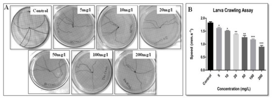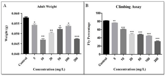 - Priyadarsini, S.; Sahoo, S.K.; Sahu, S.; Mukherjee, S.; Hota, G.; Mishra, M. Oral administration of graphene oxide nano-sheets induces oxidative stress, genotoxicity, and behavioral teratogenicity in Drosophila melanogaster. Environ. Sci. Pollut. Res. 2019, 26, 19560–19574. [Google Scholar] [CrossRef] [PubMed]