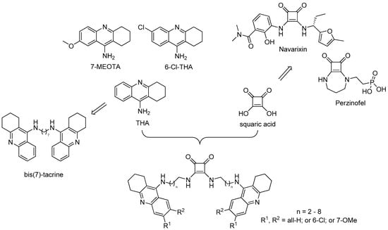 Schematic drawing for the design of tacrine-squaramide homodimers.