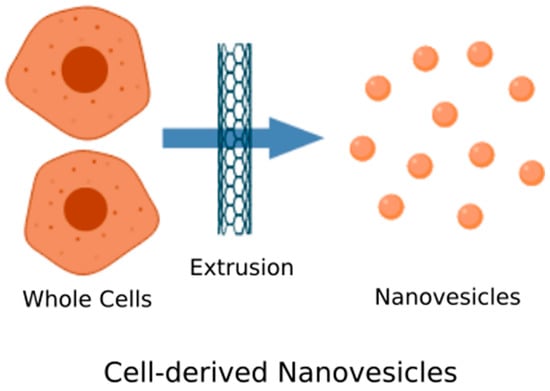 | Nanovesicles | Whole cells are fragmented into membrane pieces that self-assemble into vesicles. | Serial extrusion [,,,] |