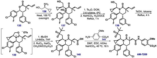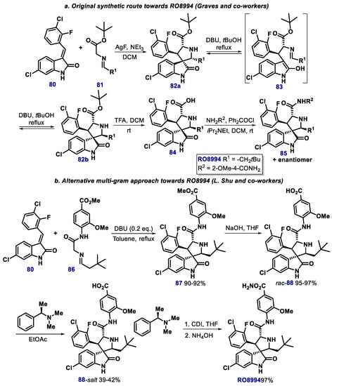 - Shu, L.; Li, Z.; Gu, C.; Fishlock, D. Synthesis of a Spiroindolinone Pyrrolidinecarboxamide MDM2 Antagonist. Org. Process Res. Dev. 2013, 17, 247–256. [Google Scholar] [CrossRef]