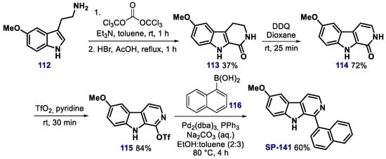 - Foley, C.A.; Al-Issa, Y.A.; Hiller, K.P.; Mulcahy, S.P. Synthesis and structure-activity relationships of 1-aryl-β-carbolines as affinity probes for the 5-hydroxytryptamine receptor. ACS Omega 2019, 4, 9807–9812. [Google Scholar] [CrossRef]