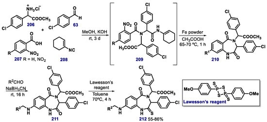 - Czarna, A.; Beck, B.; Srivastava, S.; Popowicz, G.M.; Wolf, S.; Huang, Y.; Bista, M.; Holak, T.A.; Dömling, A. Robust generation of lead compounds for protein–protein interactions by computational and MCR chemistry: p53/HDM2 antagonists. Angew. Chem. Int. Ed. Engl. 2010, 49, 5352–5356. [Google Scholar] [CrossRef]
