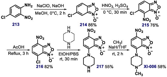 - Qiao, C.; Yonghao, Y.; Wang, L. Application of benzofuroxan derivative to resisting plant pathogenic fungi. Chinese Patent Application No. 201310003647.5, 3 April 2013. [Google Scholar]