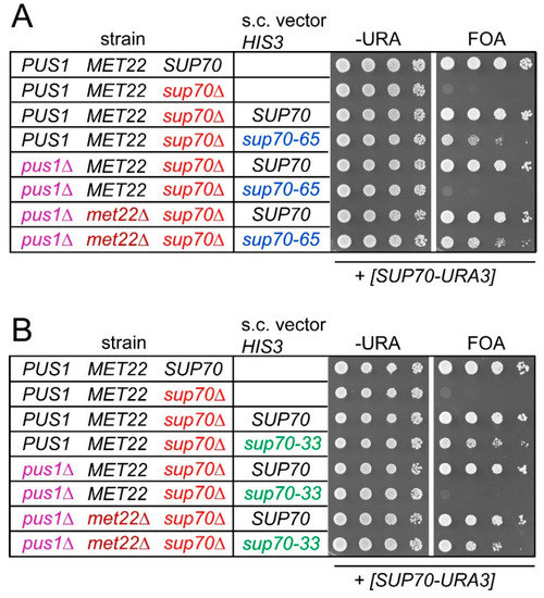 3.2. Role of MET22 in pus1 and sup70-33/sup70-65 Phenotypes