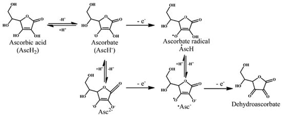 The proposed radical scavenging activity of ascorbic acid (adapted from Nimse and Pal, 2015 [143]—published by The Royal Society of Chemistry).