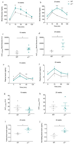 3.3. 25-Week-Old α7−/− Mice Develop Insulin Resistance