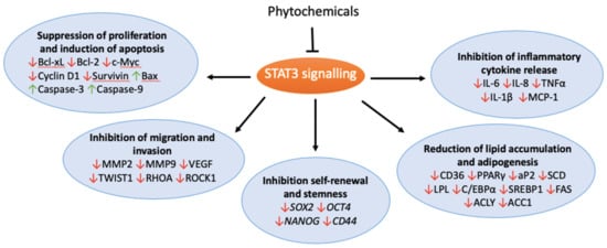 Effects of the phytochemicals on STAT3 signalling and the targets in different cancer cell line models.