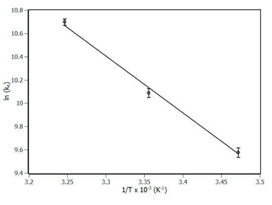 The van’t Hoff equation (Equation (7)) was applied at the binding constant to obtain the thermodynamic parameters ∆S (entropy variation) and ∆H (enthalpy variation) (Figure 4), to describe the thermodynamic balance of the complex and to provide evidence of the molecular driving forces involved in the interaction [25].