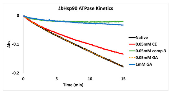 CE, compound 3 and GA LbHsp90 ATPase kinetics modulation at 50 μM.