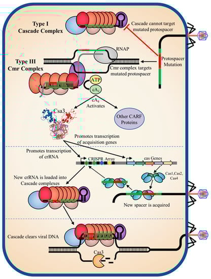 Csa3a; Csa3b; CARF; cyclic oligoadenylate; cOA; cyclic tetraadenylate; Cas; CRISPR-Cas; transcription factor 1. Introduction