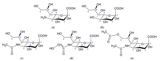 3. Schauer, R.; Kamerling, J.P. Exploration of the Sialic Acid World. Adv. Carbohydr. Chem. Biochem. 2018, 75, 1–213. [Google Scholar] [CrossRef]