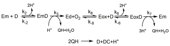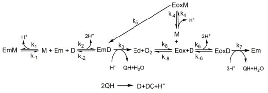 Applying the steady-state approximation for EoxD and EoxM in Scheme 1, and taking into account the relationship of the velocities between the catalytic stages, as discussed above [8], it is fulfilled: