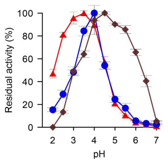 2.6. Determination of pH-Optima and Stability