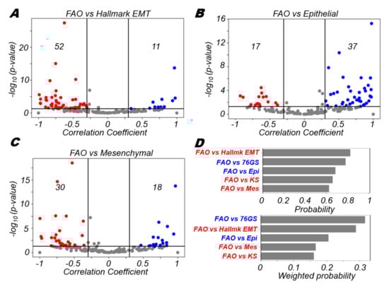 3.4. FAO Is More Likely to Positively Correlate with An Epithelial Program and Negatively with A Mesenchymal Program