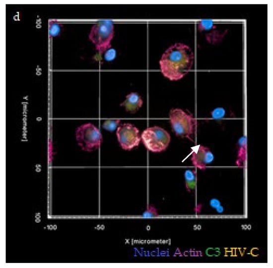 In addition, as the viral envelope possesses a complement-binding domain, HIV-C spontaneously accumulates as early as during transmission and the acute phase of infection [,,,,]. Complement deposition on its surface protects the virus from complement-mediated neutralization [] and increases HIV-1 infectivity through the interaction with complement receptors [,].