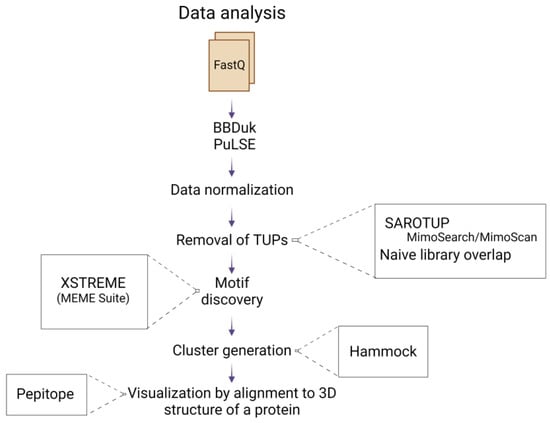 A vast amount of bioinformatic tools designed in recent years, specifically for phage panning data analysis [,,,,,,], indicate that phage display followed by NGS and data analysis for identification of protein–peptide interactions is a prosperous field continuously developing and improving.