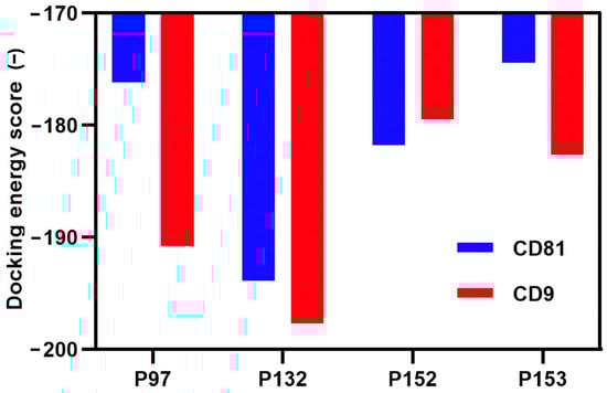 Docking energy scores of CD81-BP candidates for CD81 and CD9 proteins were assessed using a hierarchical algorithm−based web server, HPEPDOCK, for blind peptide–protein docking [].