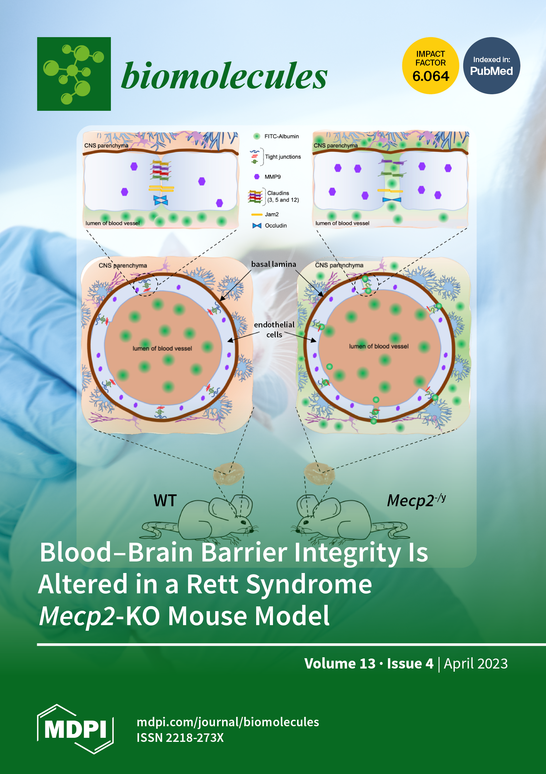 Cover Story: Rett syndrome (RTT) is a severe neurodevelopmental disorder characterized by motor and cognitive disabilities, the pathogenetic mechanisms of which remain to be fully elucidated. RTT is caused by mutations in MECP2, an epigenetic factor crucial for brain functioning. We found, in the brains of Mecp2-null mice, enhanced BBB permeability and the aberrant expression of the tight junction proteins Ocln and Cldn-5. Moreover, the Cldn3, Cldn12, Mpdz, Jam2, and Aqp4 genes, encoding factors with a role in the BBB structure and function, showed altered expressions in Mecp2-null brains. This study provides the first evidence of impaired BBB integrity in RTT and highlights a potential new molecular hallmark of the disease that might open new perspectives for the setting-up of novel therapeutic strategies. View this paper