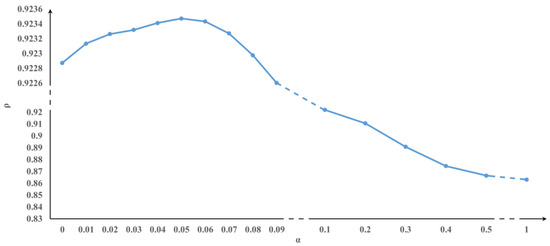 Variation in the accuracy of trifurcating simulated data under different α.
