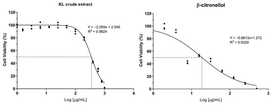 Dose–response curve of crude KL extract and β-citronellol on viability of the LX-2 cells.