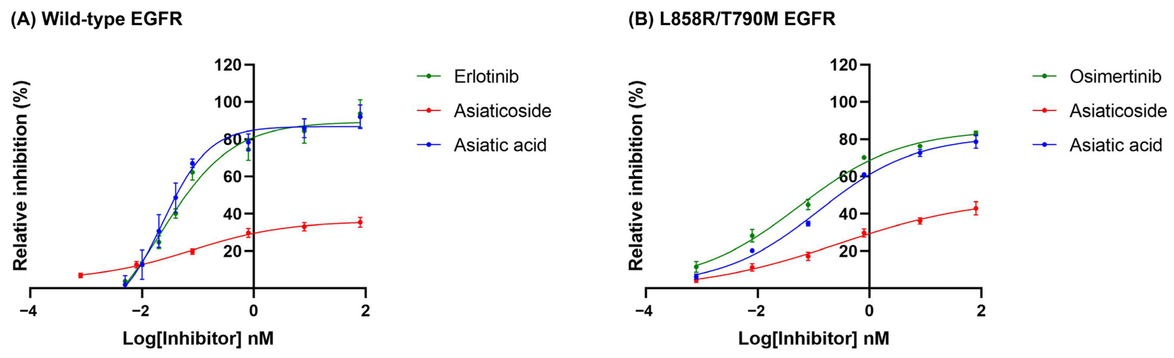 2.2. EGFR Inhibitory Activity of Asiaticoside and Asiatic Acid