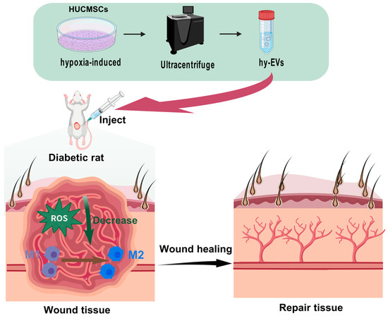 Schematic diagram of the treatment of diabetic wounds with hy-EVs derived from HUCMSCs induced by hypoxia.