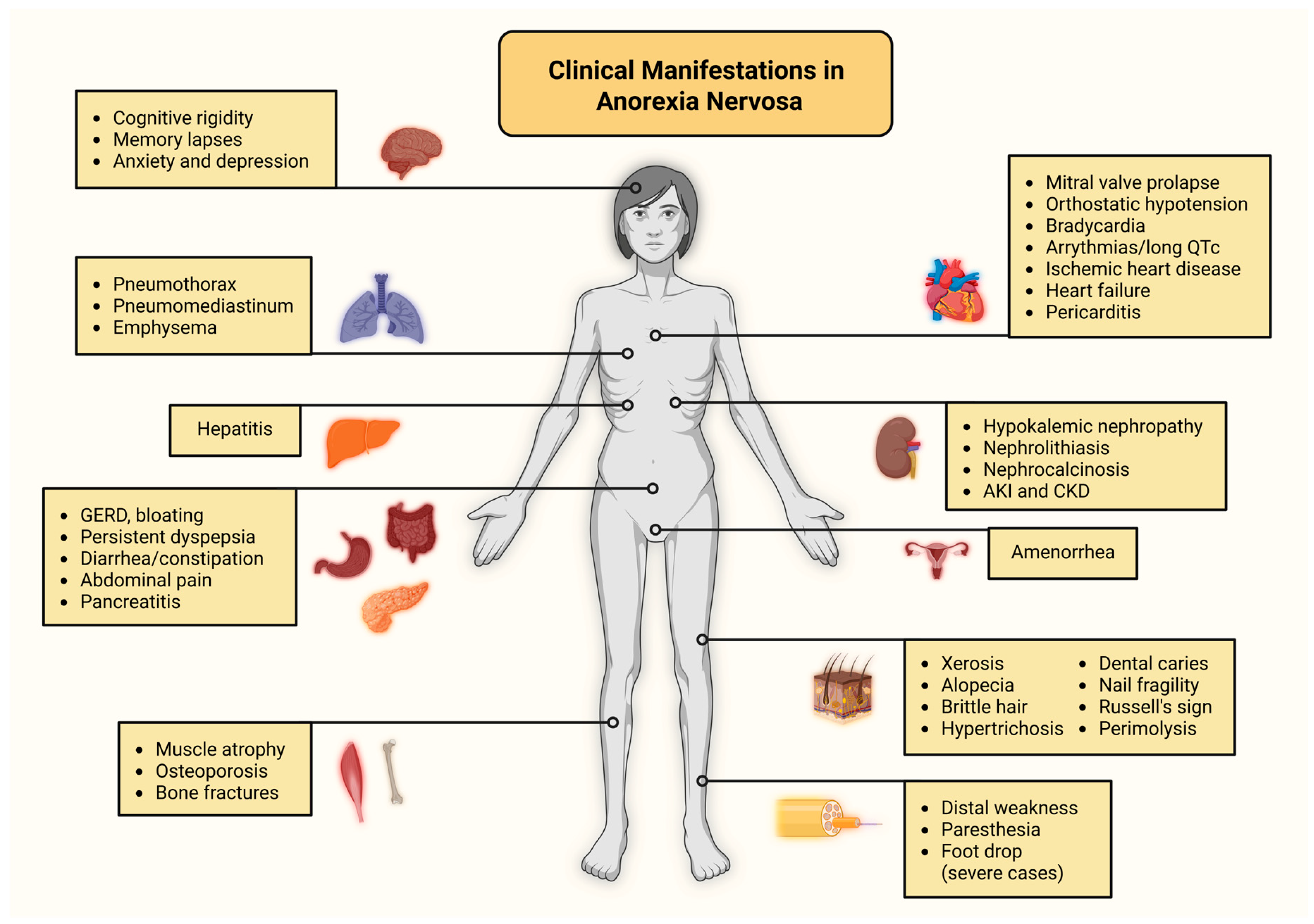 - Cost, J.; Krantz, M.J.; Mehler, P.S. Medical complications of anorexia nervosa. Cleve. Clin. J. Med. 2020, 87, 361–366. [Google Scholar] [CrossRef]