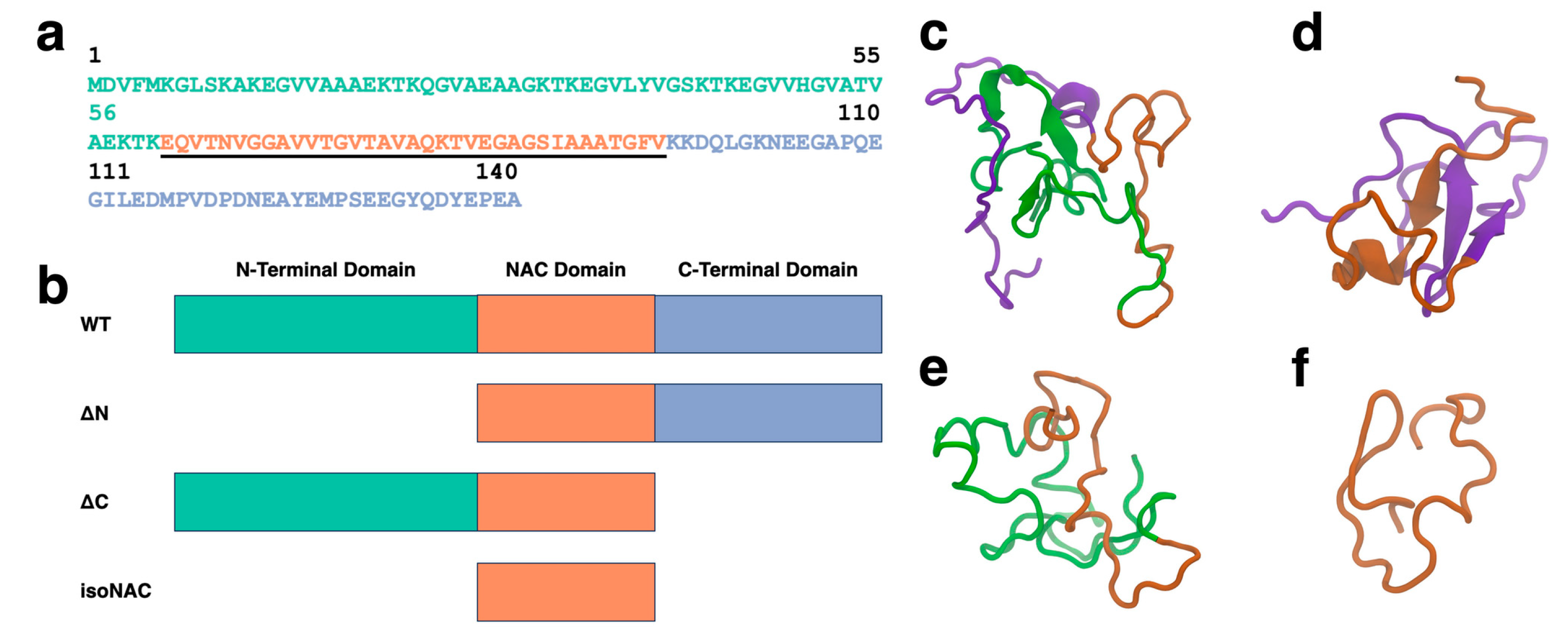 APA StyleOnishi, N., Mazzaferro, N., Kunstelj, Š., Alvarado, D. A., Muller, A. M., & Vázquez, F. X. (2025). Molecular Dynamics Study of α-Synuclein Domain Deletion Mutant Monomers. Biomolecules, 15(11), 1577. https://doi.org/10.3390/biom15111577