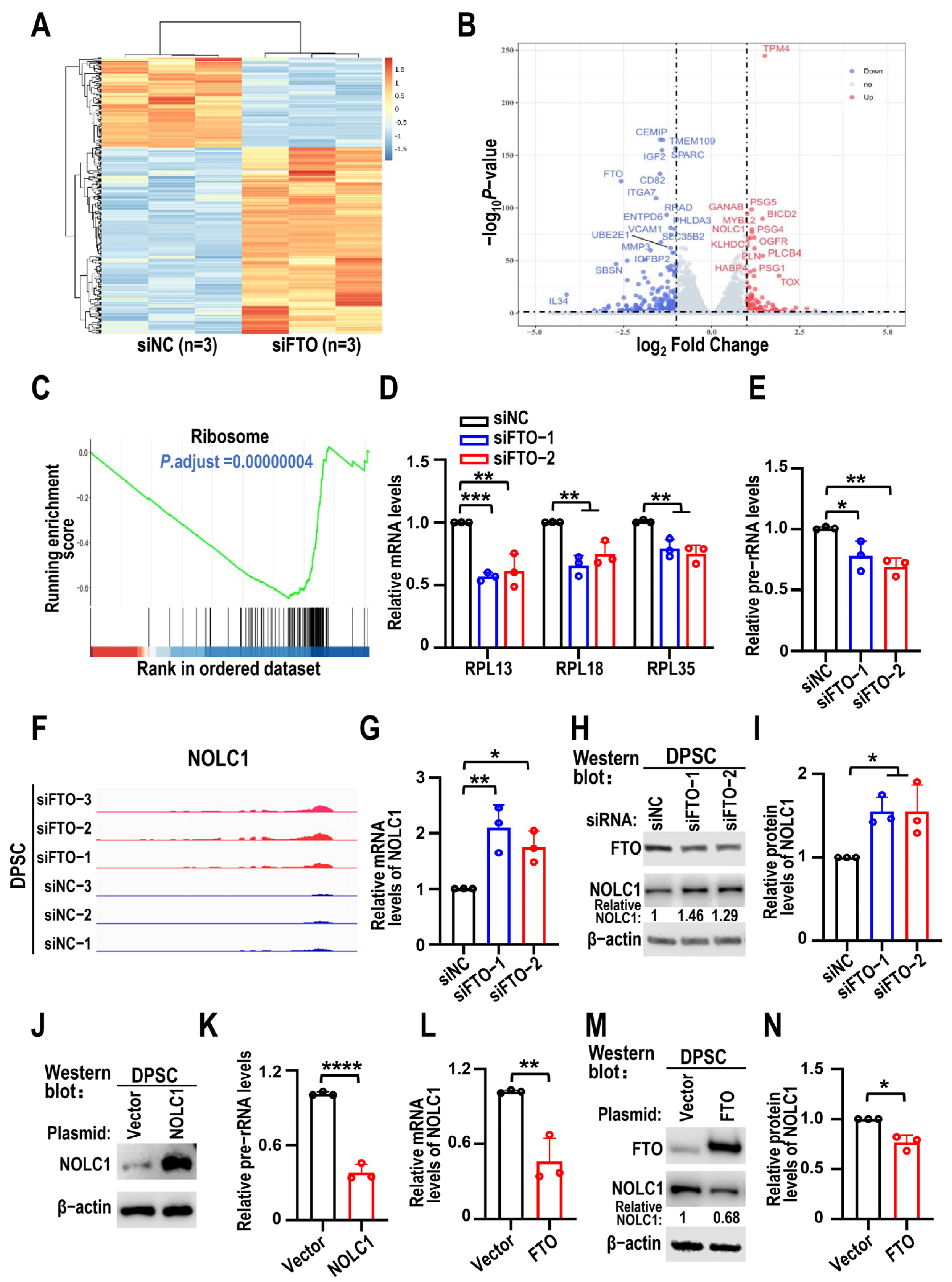 3.3. FTO KD Suppresses Pre-rRNA Synthesis Through NOLC1