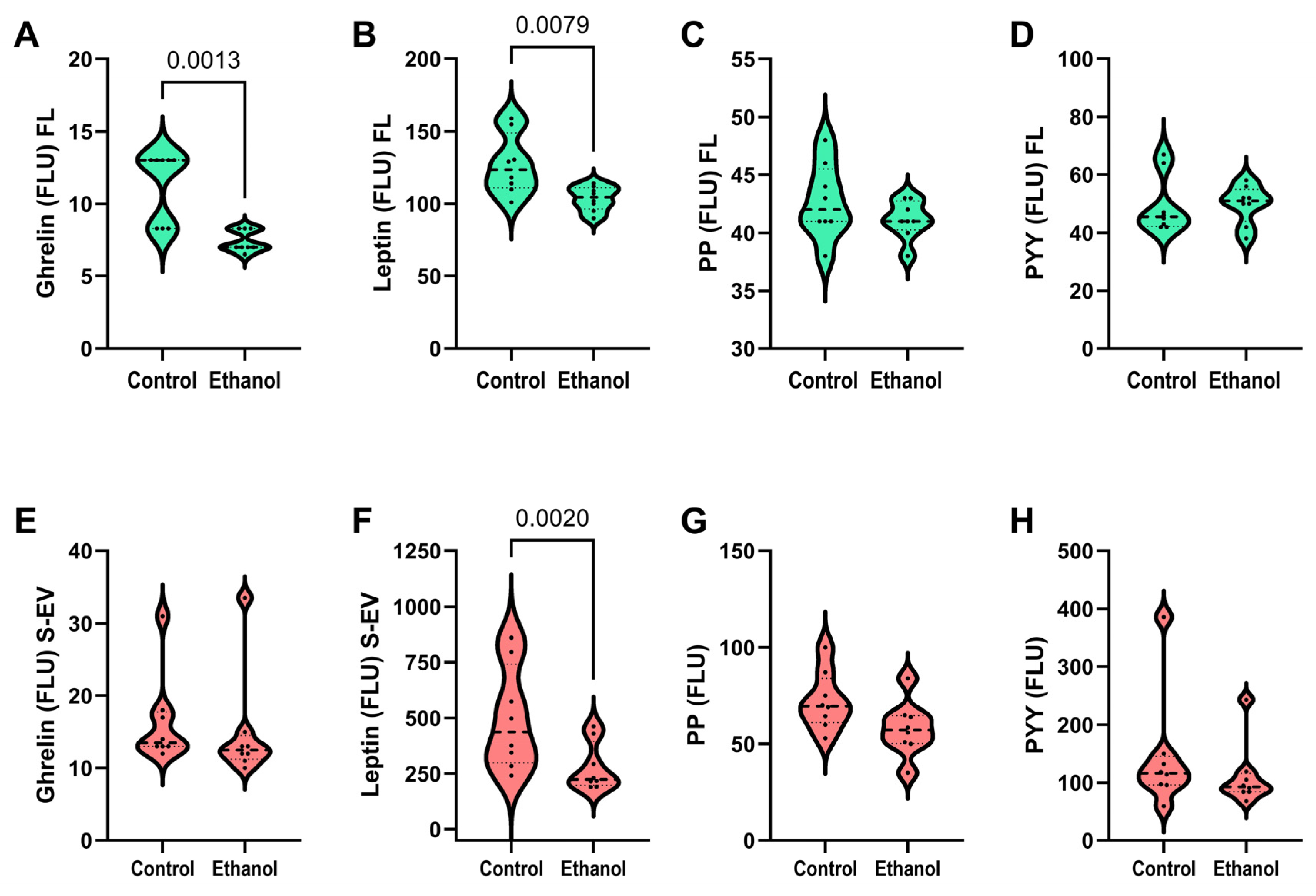 - Podgorski, R.; Galiniak, S.; Mazur, A.; Domin, A.; Podgorska, D. Serum levels of leptin, ghrelin putative peptide YY-3 in patients with fetal alcohol spectrum disorders. Sci. Rep. 2024, 14, 14971. [Google Scholar] [CrossRef]