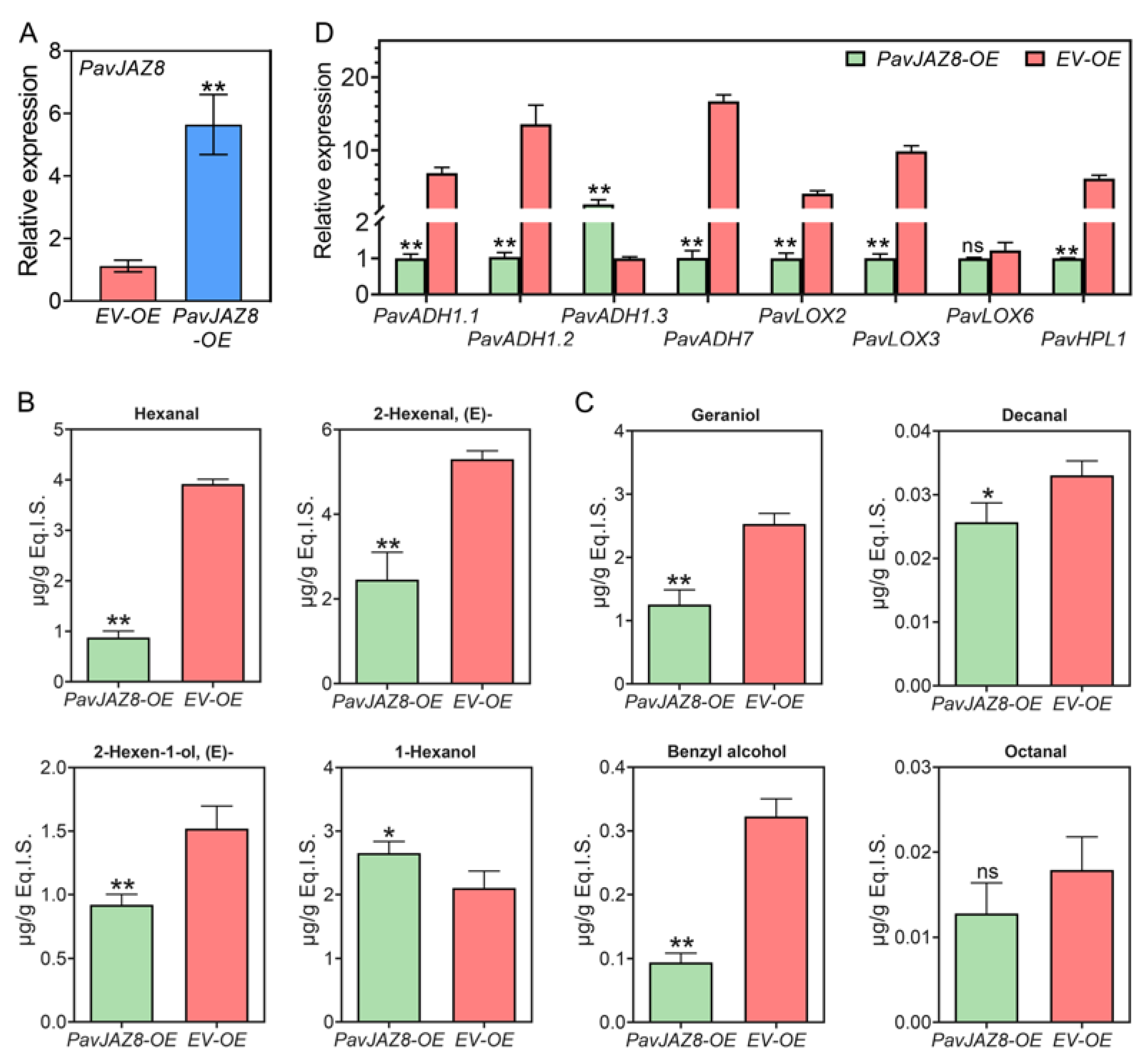 3.7. PavJAZ8 Regulates Sweet Cherry Fruit Aroma Traits
