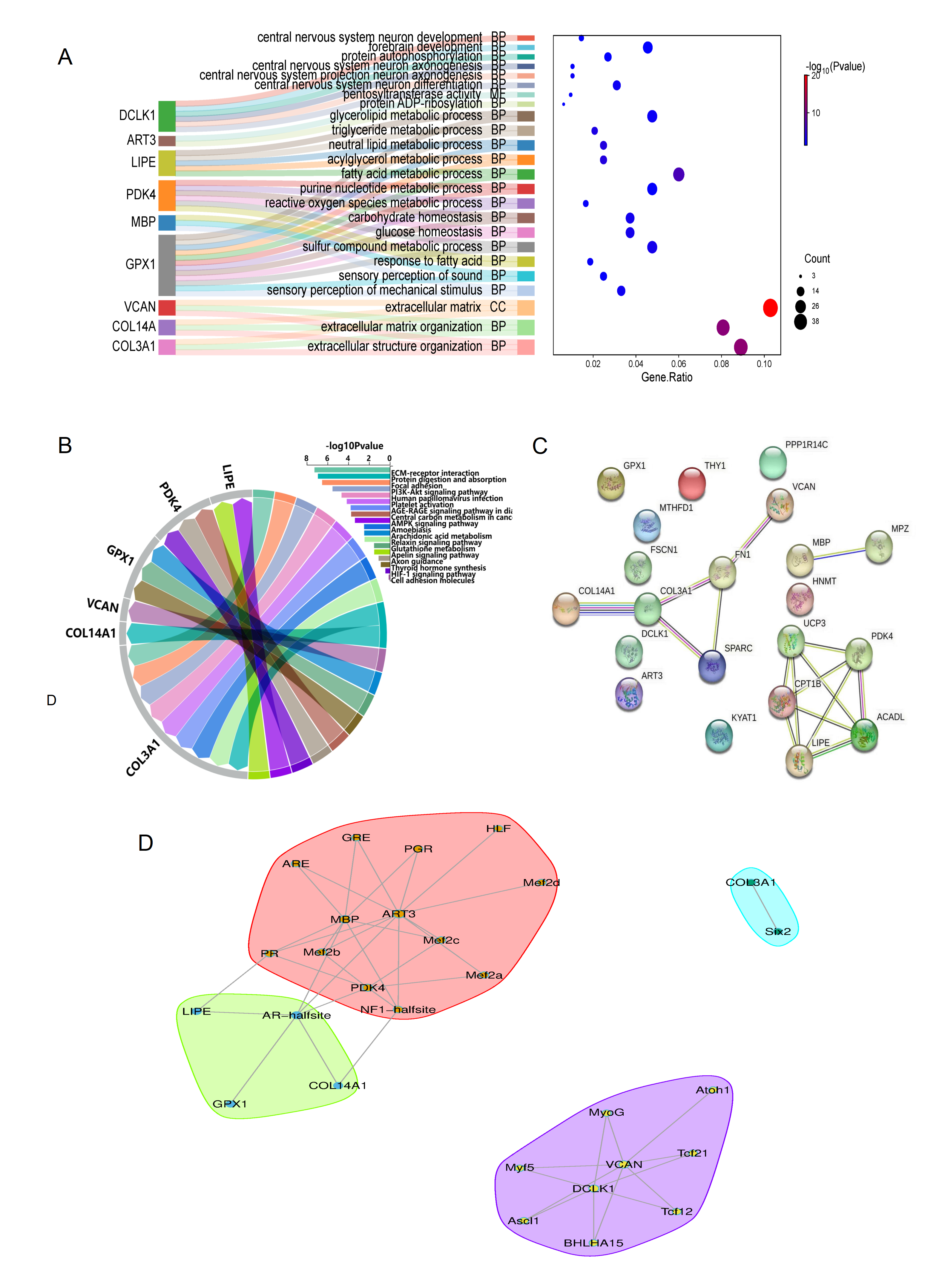 3.10. Protein–Protein Interaction and TFs-Target Gene Interaction Network